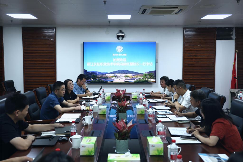 座谈会上,潘建峰对冯新红一行的来访表示诚挚欢迎,并从学校规模、专业建设、校企合作等方面简要介绍了学校基本情况。他表示,浙江长征职业技术学院办学特色鲜明,希望以此次交流为契机,建立两校常态化交流机制,相互借鉴,共同推进两校教育教学的高质量发展。