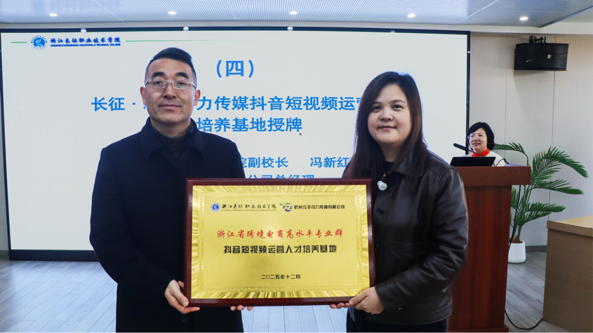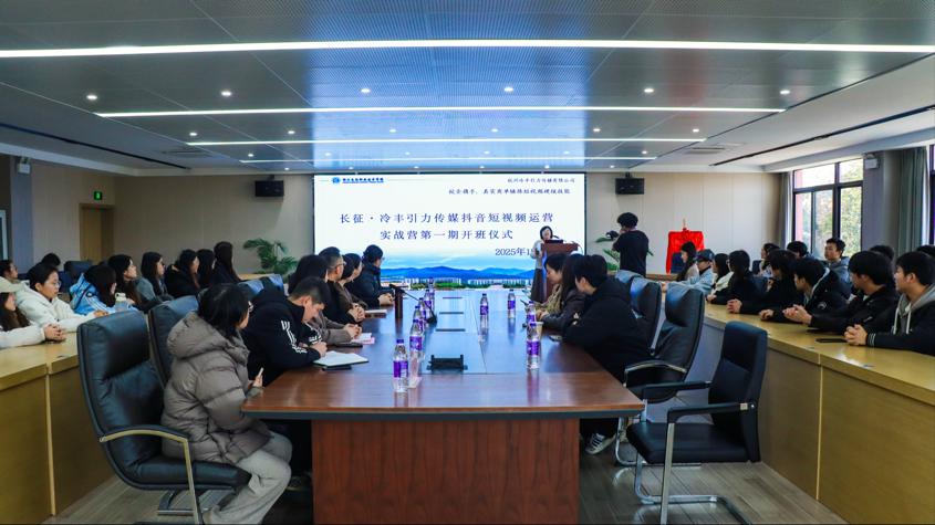 近日,商务与贸易学院与杭州冷丰引力传媒有限公司(以下简称:“冷丰传媒”)合作的抖音短视频运营实战营开班仪式顺利举行。冷丰传媒总经理吴丽江,学校副校长冯新红出席,商务与贸易学院院长王珍、党总支书记余泓、副院长陈露、党总支副书记高计龙及师生代表50余人参加仪式。