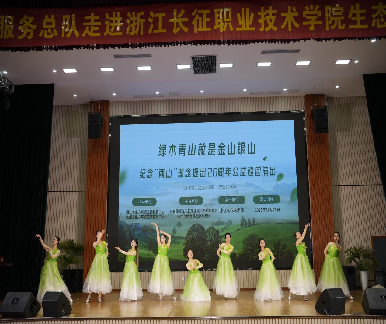 授旗仪式后,浙江传化艺术团带来了一场环保主题文艺演出。欢快的歌舞、诙谐又发人深省的小品轮番上演,演员们以精湛的表演生动诠释绿色生活的重要意义,将环保理念融入艺术表达之中。